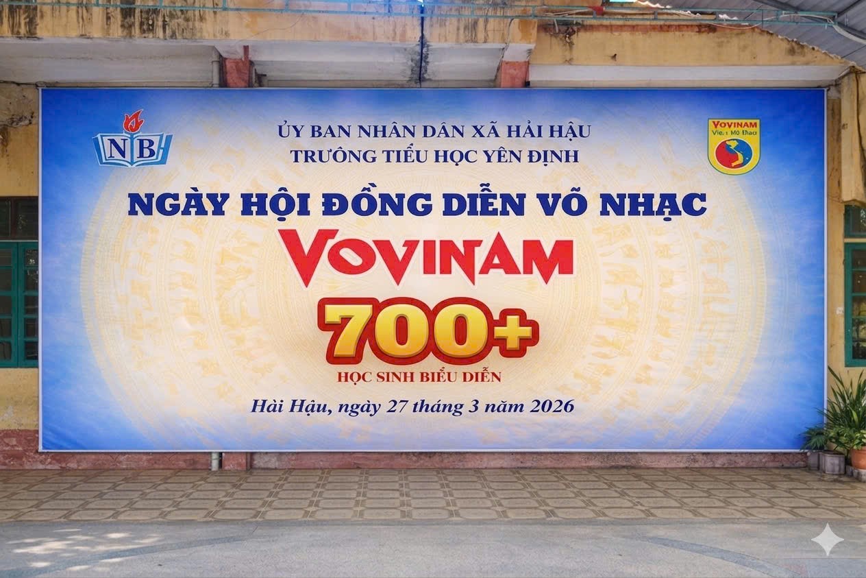 Trong không khí sôi nổi của những ngày tháng 3 lịch sử, hướng tới kỷ niệm ngày Thành lập Đoàn TNCS Hồ Chí Minh và ngày Thể thao Việt Nam, sáng ngày 27/03/2026, trường Tiểu học Yên Định (xã Hải Hậu, tỉnh Ninh Bình) đã long trọng tổ chức “Ngày hội đồng diễn Võ nhạc Vovinam” với quy mô chưa từng có.